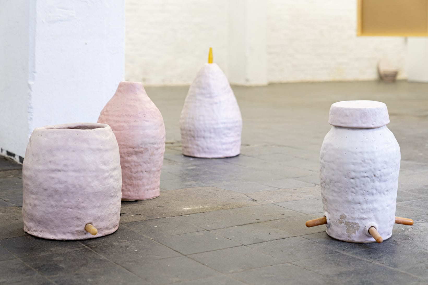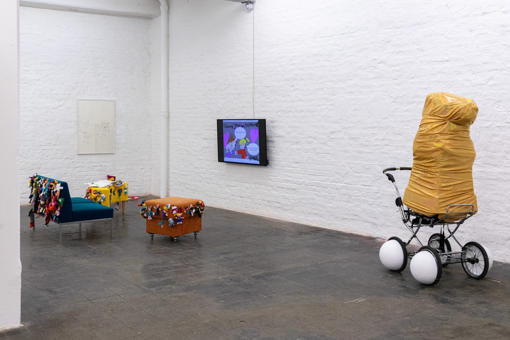 The exhibition "Soo many hmmmm" brings together nine artistic positions and aims to create a space for communication in which the works enter into contact like interlocutors with different motivations. In a quiet and sometimes noisy gathering, the exhibited works negotiate issues that arise in the encounter. Emotional involvement, craftsmanship and conceptual orientation all play different roles.