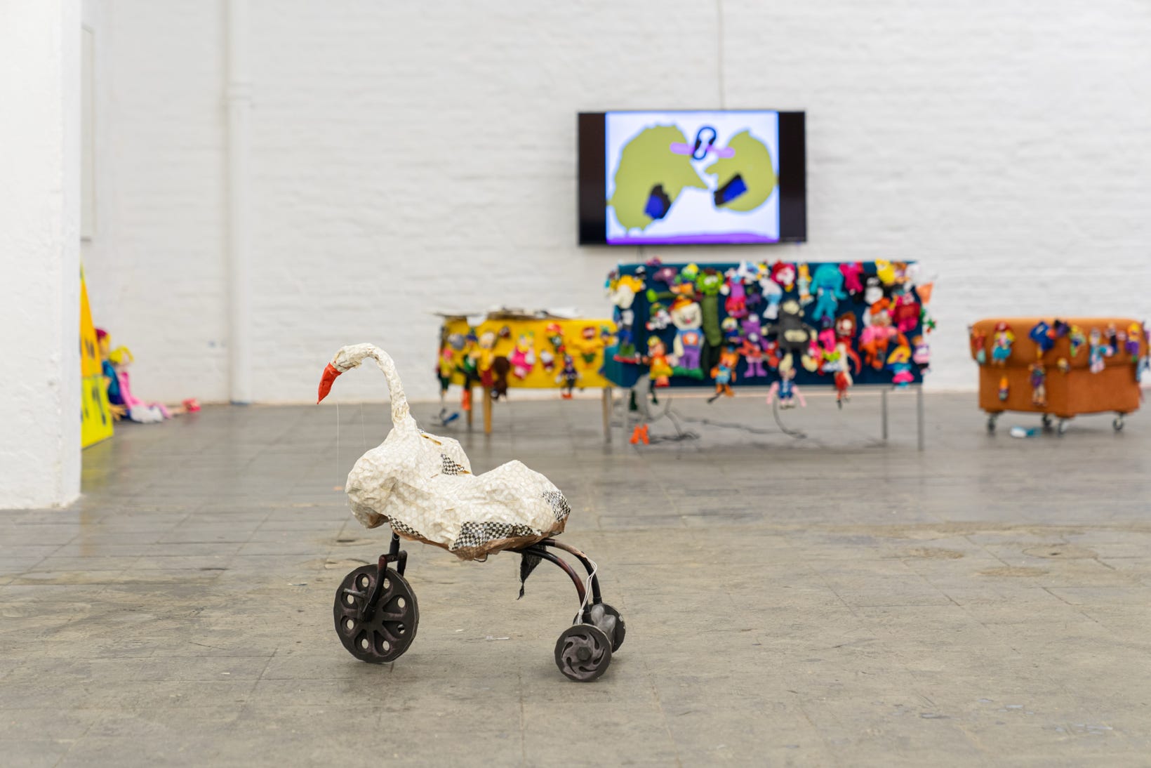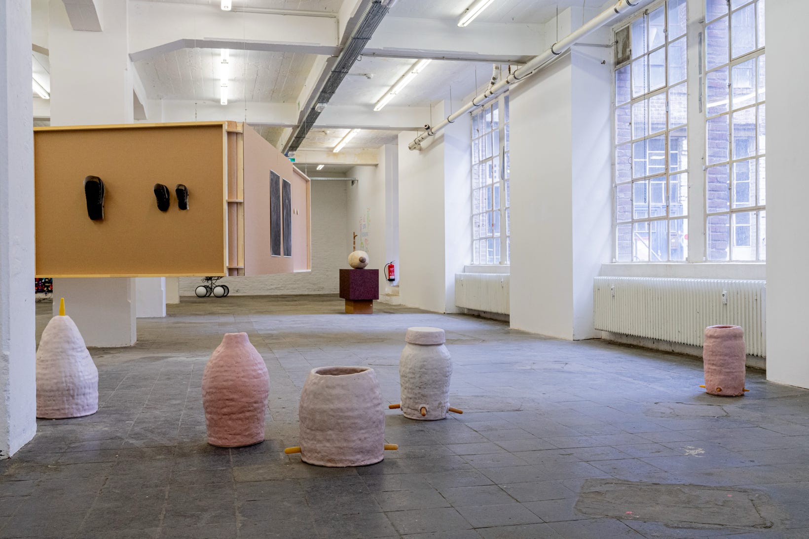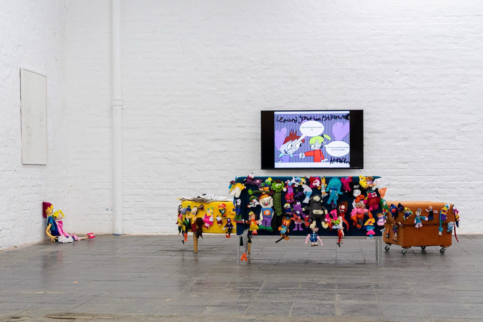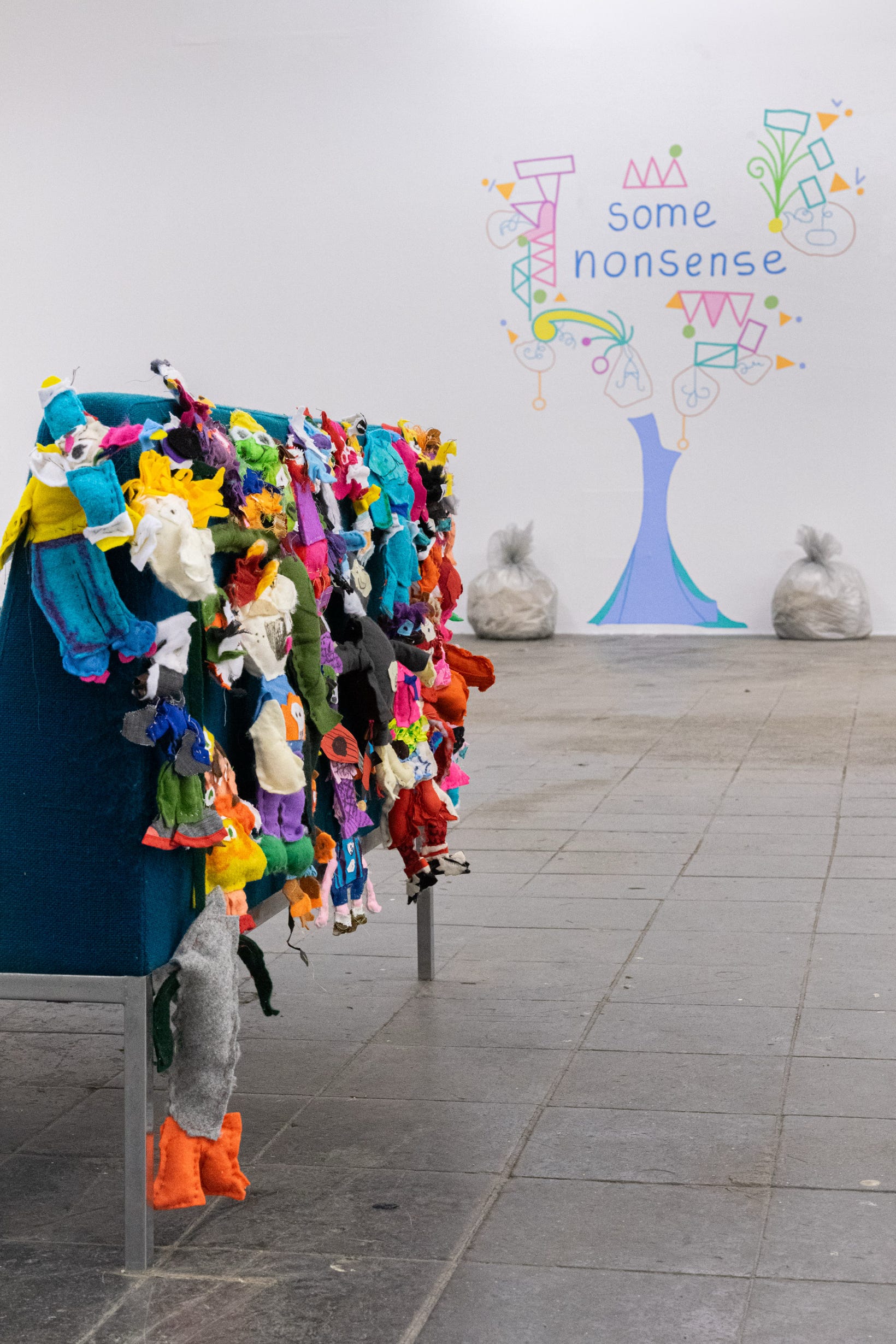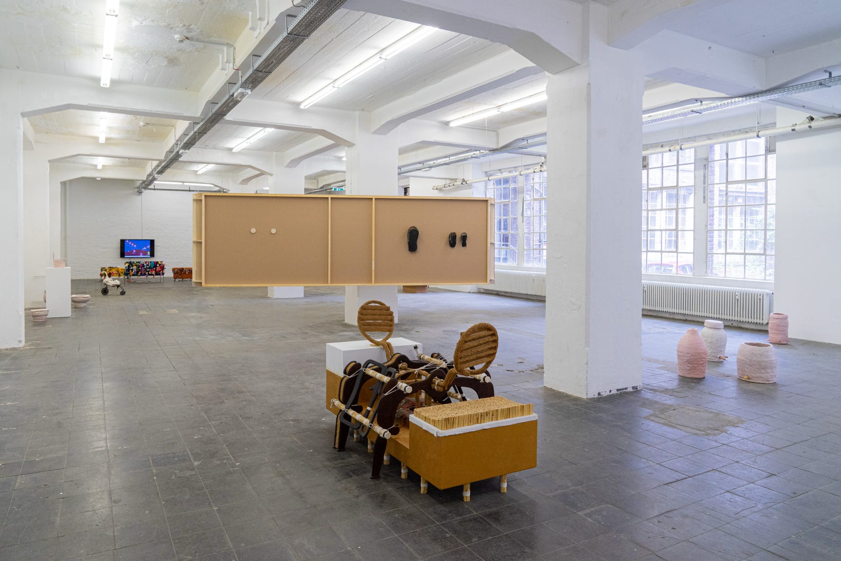 The exhibition "Soo many hmmmm" brings together nine artistic positions and aims to create a space for communication in which the works enter into contact like interlocutors with different motivations. In a quiet and sometimes noisy gathering, the exhibited works negotiate issues that arise in the encounter. Emotional involvement, craftsmanship and conceptual orientation all play different roles.